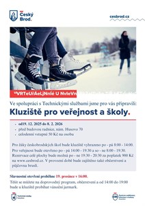Během provozní doby bude zajištěno také občerstvení a půjčovna bruslí.