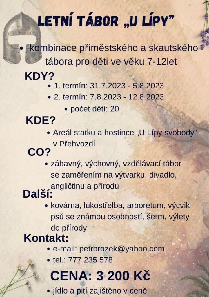 Kombinace příměstského a skautského tábora pro děti 7 - 12 let. Více v přiloženém letáku