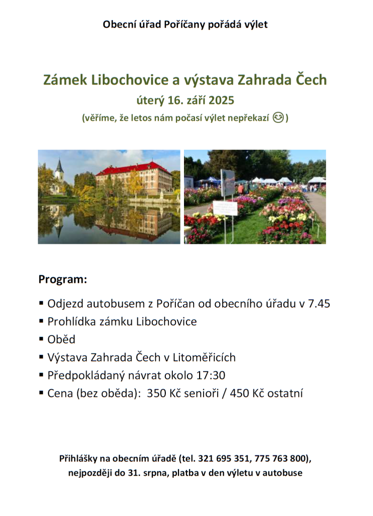 Výlet - zámek Libochovice a Zahrada Čech